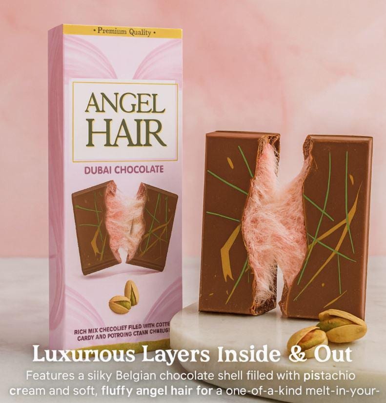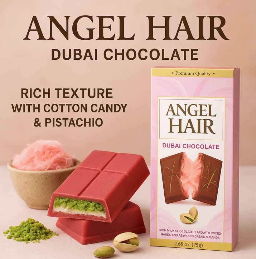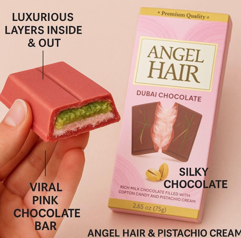 2.65 oz Angel Hair Pink Chocolate Bar Cotton Candy+Pistachio